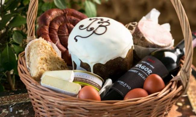 Далее предполагается, что в пасхальную корзинку должны отправиться продукты, запрещенные во время поста, ведь люди, верующие в Святое Воскресенье «разговляются», то есть могут порадовать себя едой, которую исключили из своего рациона в строгий пост: мясо и молочные продукты. В нашем регионе в корзинки чаще всего кладут кусочек копченого балыка (от 200 грн за килограмм) или буженины (те же 200 грн за кг). А также колечко домашней колбаски (100 грн за колечко). Из молочных продуктов мелитопольцы предпочитают сыр – около 250 грн за кг. Но, естественно, по килограмму каждого деликатеса класть в корзинку не стоит, иначе она окажется неподъемной. Достаточно купить 300-400 г каждого продукта.