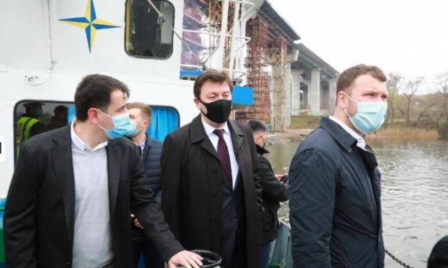 “На вантовому мосту завершили зведення тимчасових опор” - под таким заголовком в обладминистрации рассказали о визите министра.