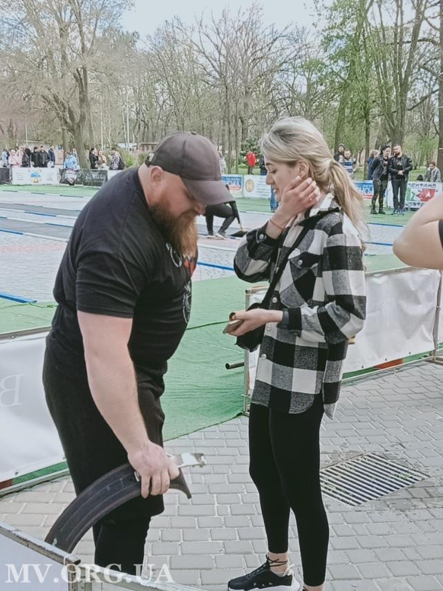 Сегодня, во время проведения Чемпионата Украины по богатырскому многоборью в Мелитополе, случилось настоящее чудо - между соревнованиями один из стронгменов, участник соревнований в супертяжелом весе, Алексей Борис, признался в любви Анастасии, своей девушке, и попросил ее руки. Она ответила: "Да".