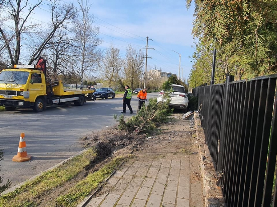 Автомобиль Mercedes сбил столб. На данный момент известно, что никто не пострадал. Инцидент произошел сегодня, 29 апреля, вечером на улице Макарова.