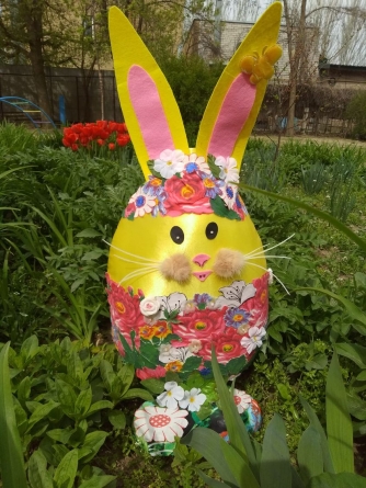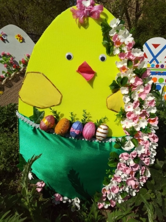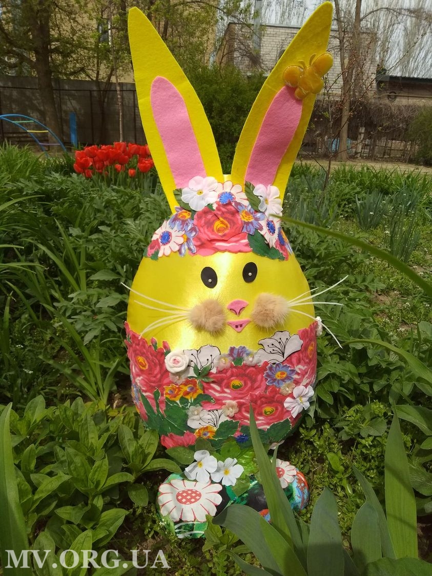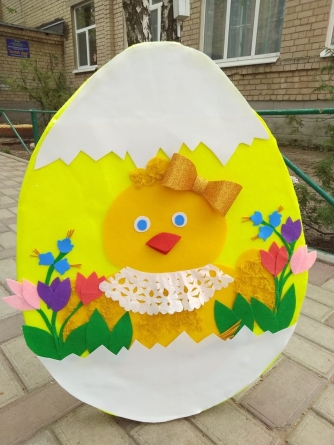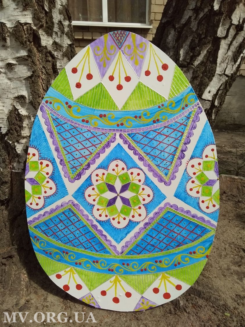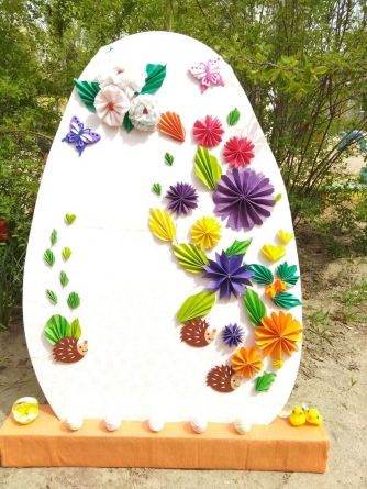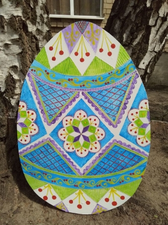 Метровые писанки создавали воспитатели и родители дошколят, конечно же, с маленькими помощниками. Декорировали их цветами и бабочками из бумаги, фетра и фоамирана, узорами из шпагата и лент, расписывали яркими красками. 30 апреля все эти расписные шедевры выстроились во дворе сада, и детвора с удовольствием изучала их во время дневных прогулок, а воспитатели рассказывали малышам о народных традициях расписывать яйца на Пасху.
