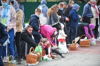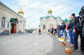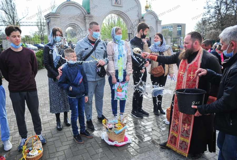 РепортерUA запечатлел, как освящали пасхальные куличи в Свято-Николаевском соборе и в Храме святого апостола Иоанна.