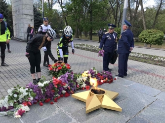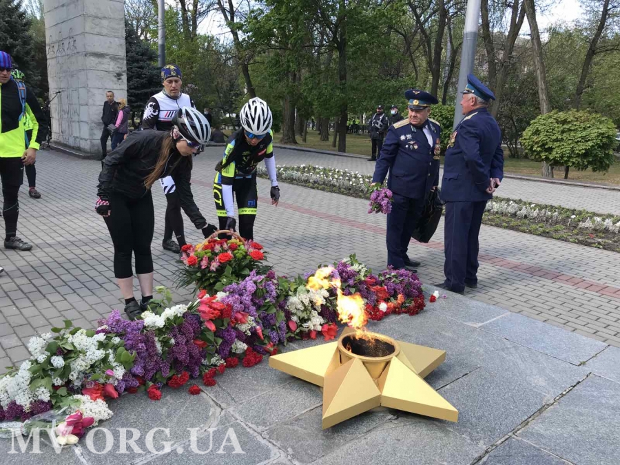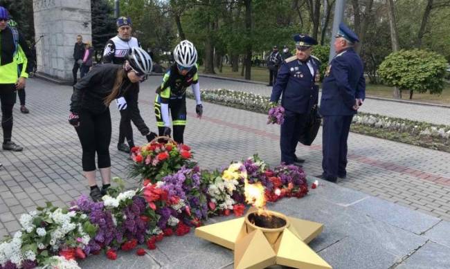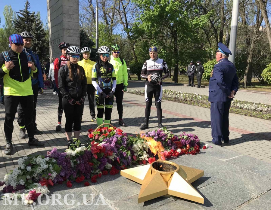 Мелитопольские велосипедисты возложили цветы к Вечному огню, после чего отправились в путь. Спортсмены посетили мемориалы в Константиновке, Мордвиновке, Данило-Ивановке, Новом, Зеленом и другие памятные места Мелитопольского района. Финальной точкой заезда стало Братское кладбище на улице Героев Крут.