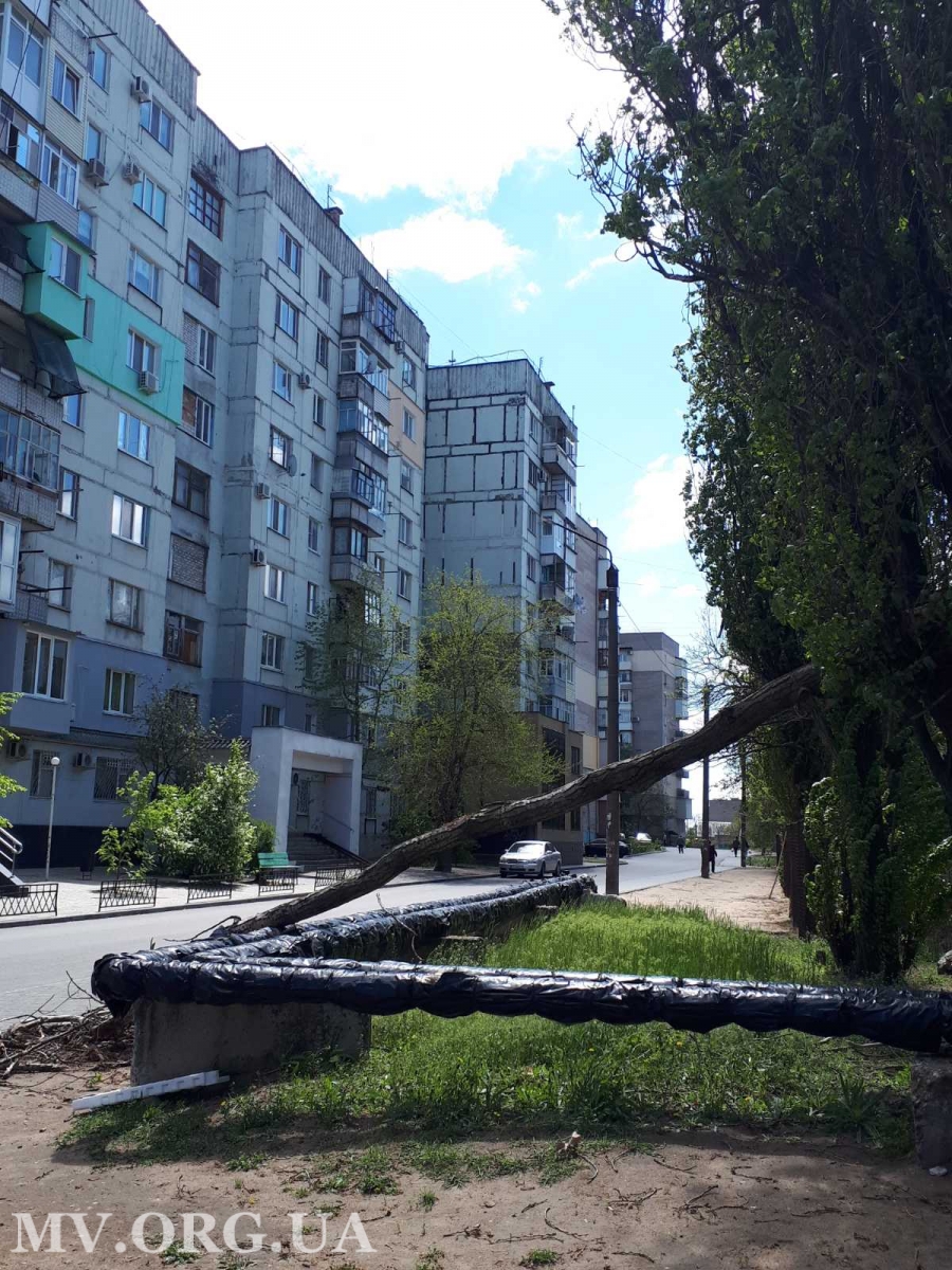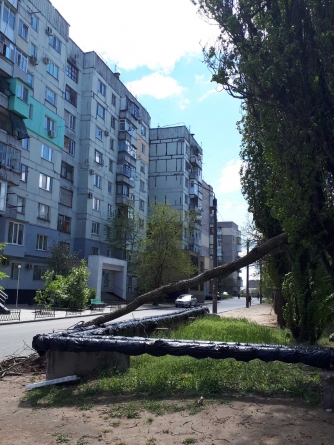 Сегодня, 9 мая, непогода стала причиной ЧП в Мелитополе. Возле центра занятости на микрорайоне из-за сильного ветра рухнул сухой тополь. Обветшалое старое дерево упало на теплотрассу в многоэтажном секторе.