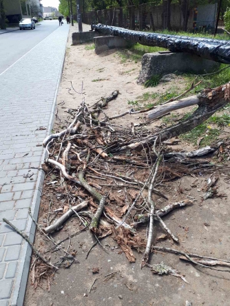 Этот сухой дрючок уже лет десять стоял и ждал на кого упасть. Я так понимаю, в городе вообще нет службы которая следит за состоянием насаждений, дорог и тротуаров.