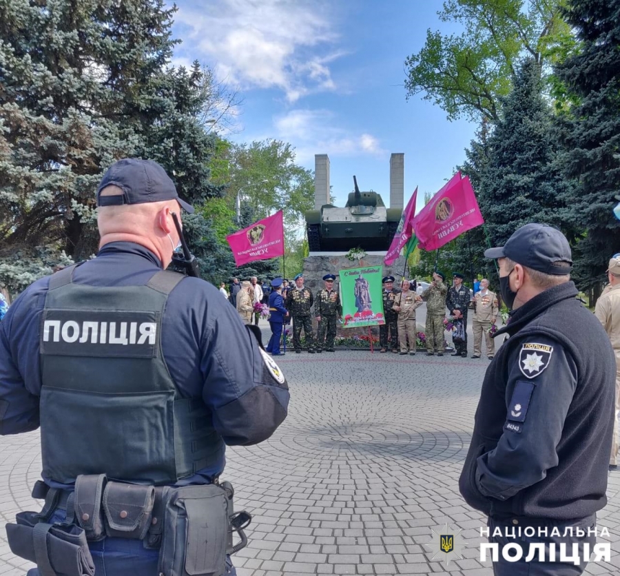 Во время мероприятий по случаю 76-й годовщины победы над нацизмом во Второй Мировой войне полицейские Мелитопольского районного управления полиции, совместно с мобильными группами и бойцами батальона патрульной службы полиции особого назначения «Скиф» ГУНП в Запорожской области осуществляют охрану публичного порядка и безопасности.