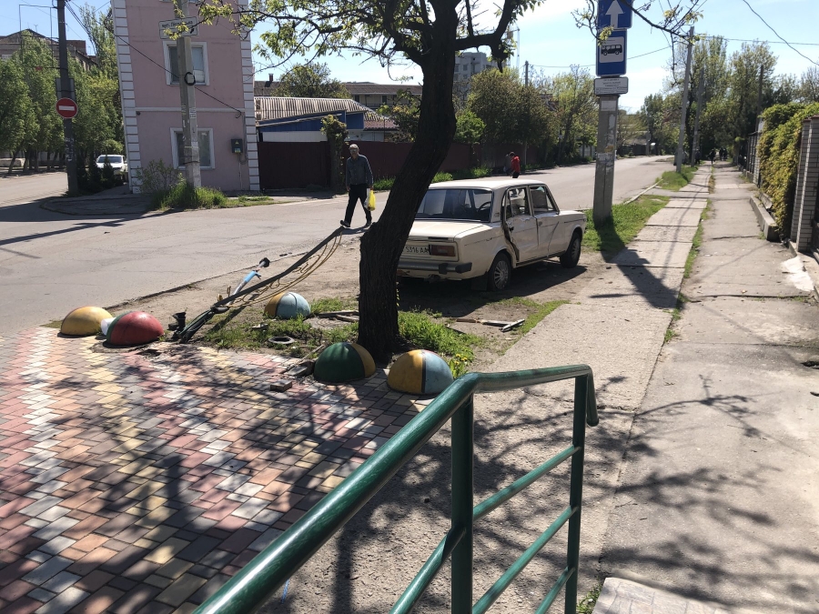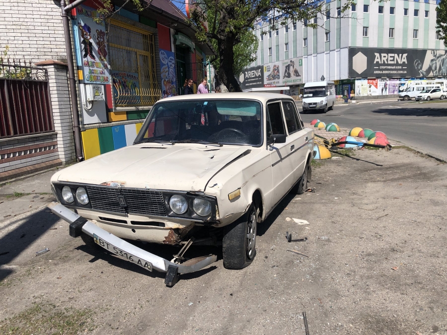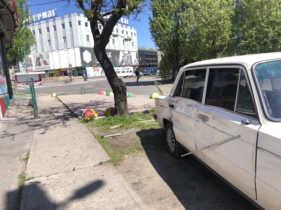 В Бердянске лихач сбил лавочку и сбежал, бросив авто (фото)
