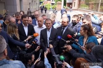 11:55 К зданию суда прибыл обвиняемый Виктор Медведчук со своими соратниками по партии. В коротком комментарии журналистам политик заявил, что обнародованное накануне расследования Дениса Бигуса является провокацией против него.
