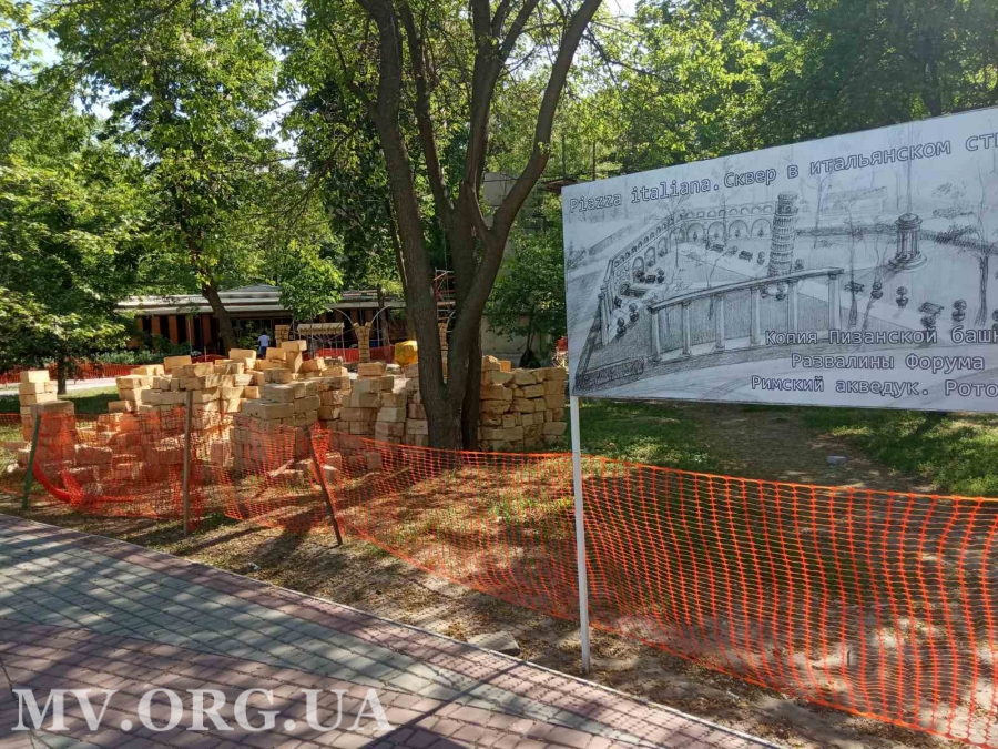 Создание новой тематической зоны в любимом месте отдыха мелитопольцев и гостей города началось в марте этого года. Площадь Piazza Italiana было решено сделать в зеленой зоне напротив "Поляны сказок".