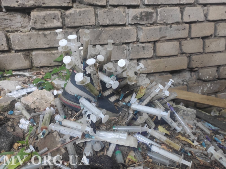 За одним из ресторанов, который находится на проспекте Богдана Хмельницкого, мужчина обнаружил десятки использованных мединструментов. Некоторые шприцы с кровью были воткнуты в кроссовок, а остальные – просто валялись рядом.
