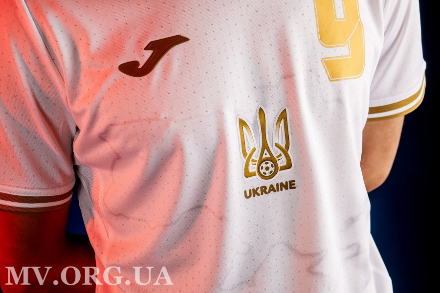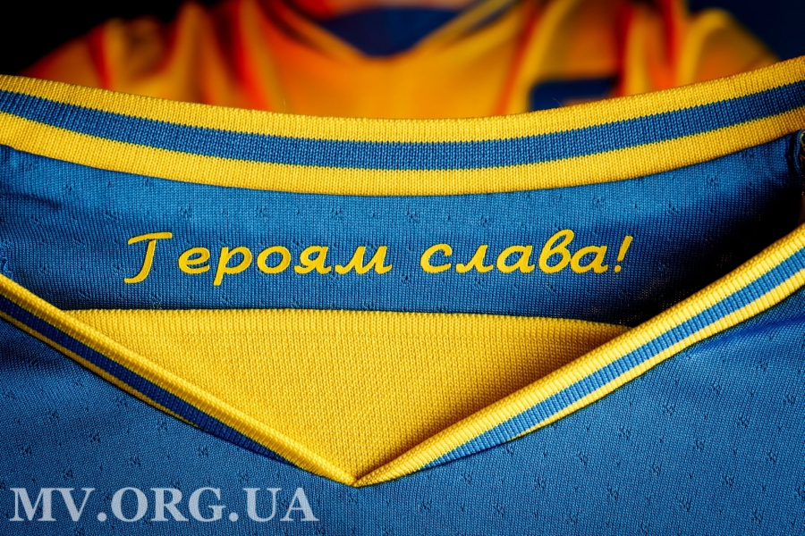 На передней части футболок изображена территория страны с гербом Украины. На спинах у игроков, над фамилиями, нанесено приветствие "Слава Украине", а на воротничках изнутри ответ на него "Героям слава".