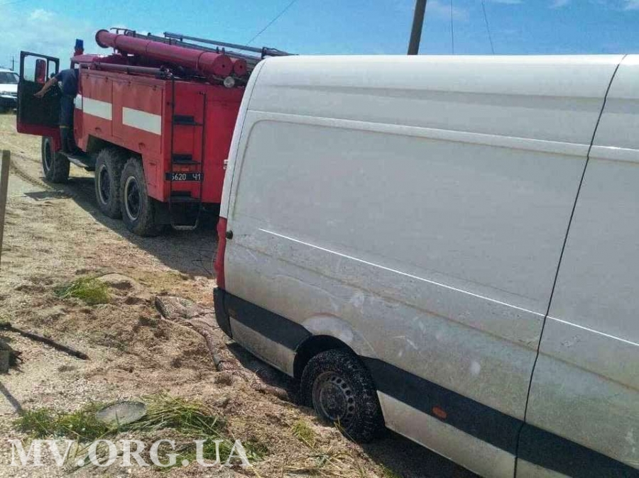 В связи с этим утром помощь бойцов ГСЧС потребовалась на Федотовой косе в пгт Кирилловка. Здесь часть автомобиля ушла под воду и водитель не смог самостоятельно продолжить движения.