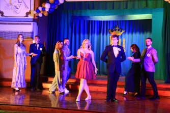 Следующим этапом конкурса была викторина, где пары должны были проявить всю свою эрудицию, смекалку и чувство юмора, отвечая на вопросы. Завершал конкурс традиционный выход в вечерних образах.