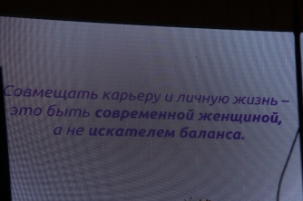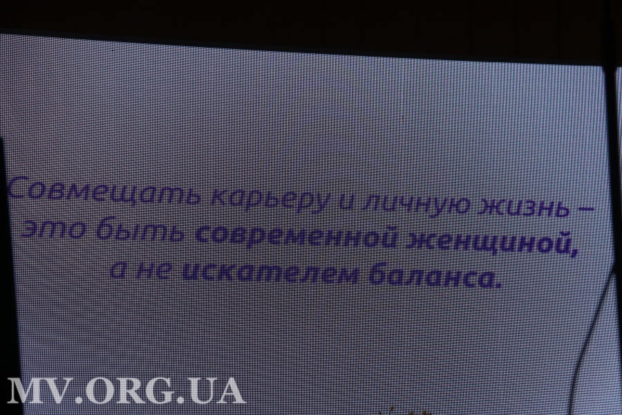 Пожалуй, самым долгожданным моментом стало появление на сцене украинской телеведущей, актрисы, общественного деятеля, идейного вдохновителя серии благотворительных мероприятий Charity weekend, Почетного посла ООН в области народонаселения в Украине Маши Ефросининой. В программе форума было заявлено, что звездная гостья расскажет участницам мероприятия о том, как найти баланс между семьей и карьерой. Практически сразу знаменитость заявила, что, по ее убеждению, этого самого баланса попросту не существует.