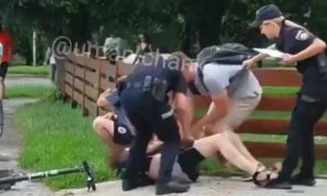 Прибывшие на место происшествия полицейские, пытались уладить конфликт. Но женщина, которая хотела забрать самокат себе, набросилась на них с кулаками.