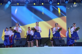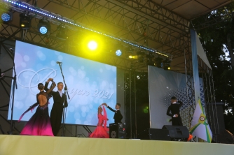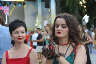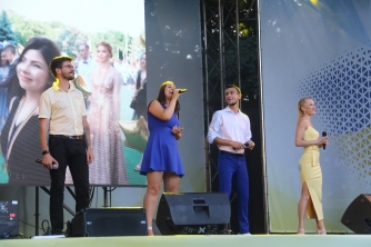 Шествие виновников торжества закончилось возле большой парковой сцены, где проходила официальная часть праздника с церемонией награждения и поздравлениями от городской власти.