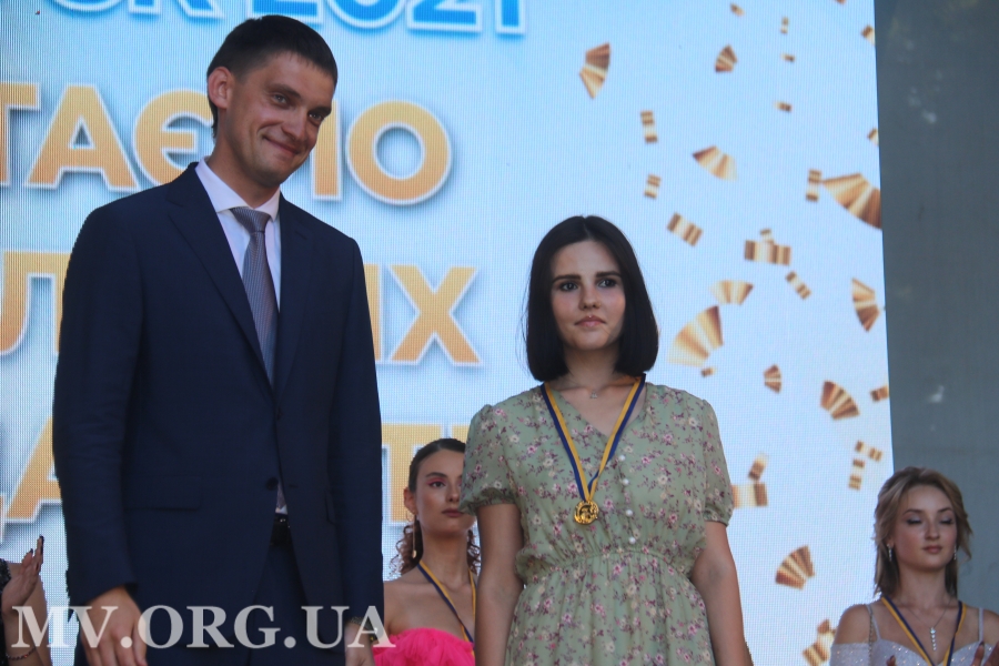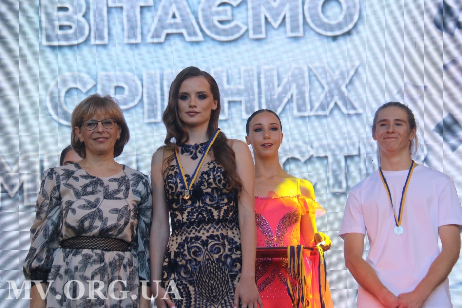 - выпускнице СОШ № 7 Виолетте Мастюгиной, что получила 12 баллов по четырем предметам ВНО (украинский язык, математика, английский язык, физика).