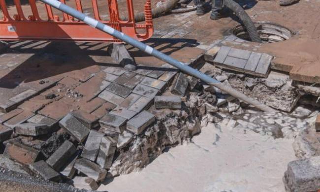ЧП произошло в среду, 14 июля, в Днепре. Девушку , провалившуюся под тротуар, удалось спасти коммунальщикам.