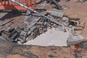 Коммунальщики работали в месте порыва водовода на проспекте Яворницкого в Днепре, когда несколько человек решили перейти по пешеходному переходу проспект. Одна девушка решила перепрыгнуть лужу, стала на антипарковочную полусферу и провалилась по шею в воду, вместе с частью тротуара. Коммунальщики помогли ей, вытащив наверх.