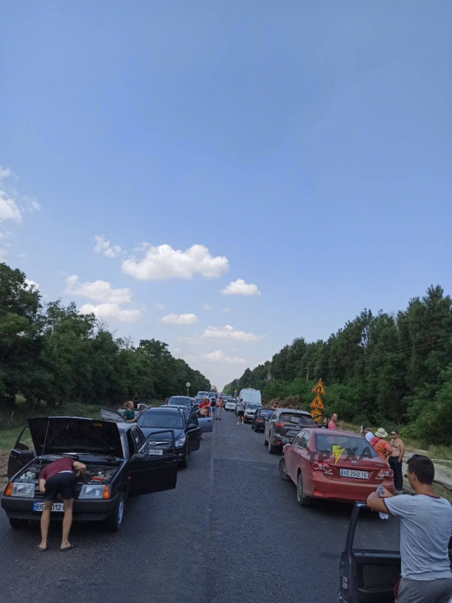 Машины перед Кирилловкой застыли в заторах в страшную жару (фото, видео)