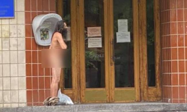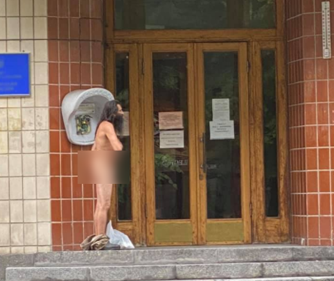 В Киеве возле здания приемной президента запечатлели голого мужчину.