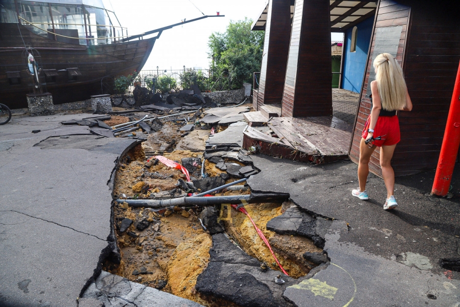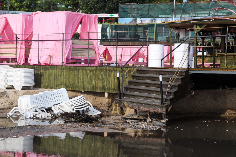 Больше всего пострадал пляж Аркадия. Летние площадки уничтожены, местами появились глубокие овраги.