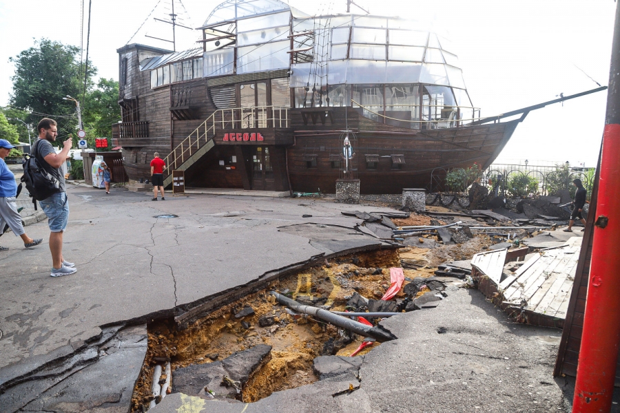 В ночь на 22 июня, Одессу накрыла непогода. Мощный ливень затопил магазины, разрушил пляжи, порвал асфальт. Шквальный ветер вырывал деревья, некоторые районы остались без света, дома затоплены, а людей сносило потоками воды.
