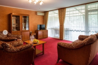 Ну а самый дорогой номером за 20 000 грн в сутки. И для тех, кто готов заплатить такие деньги, в свое распоряжение получат номер площадью 120 кв м с двумя спальнями, гостиной и балконом. В стоимость включено трехразовое питание, развлечения в виде игры в бильярд и минигольф, а также детский клуб.