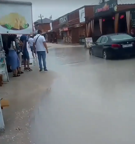 В Кирилловке в результате мощного ливня образовался потоп. Вода затопила базы отдыха, которые расположены на Федотовой косе.