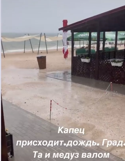 Кроме того, отдыхающие сообщают, что в Кирилловке также выпал град.