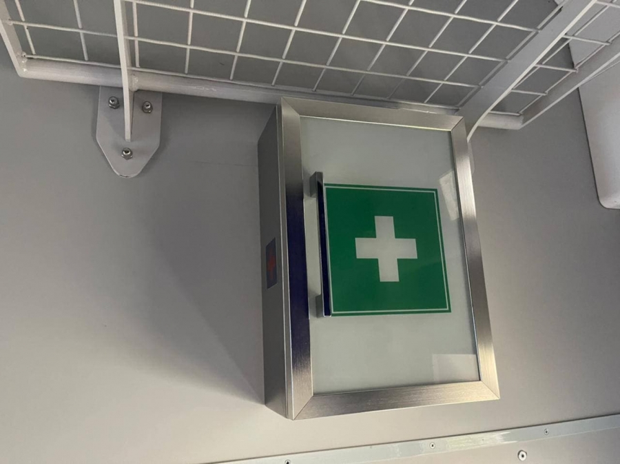 Также в купе установлены мониторы, которые показывают температуру, скорость поезда, дату, время и прочее. Есть розетки с USB-портами.