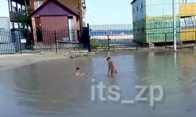 Как видно на видео, двое детей устроили заплыв в грязной воде посреди дороги. При этом глубина импровизированного моря достигала примерно полуметра.