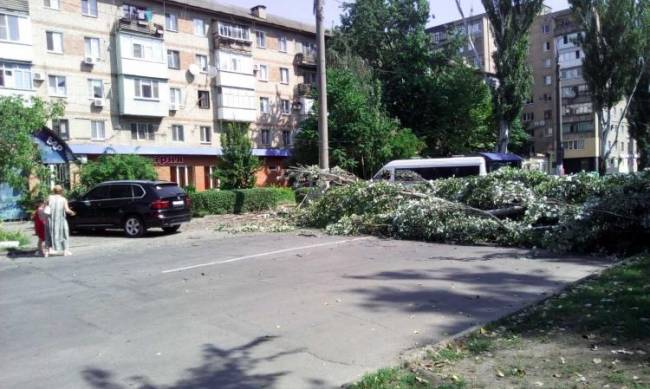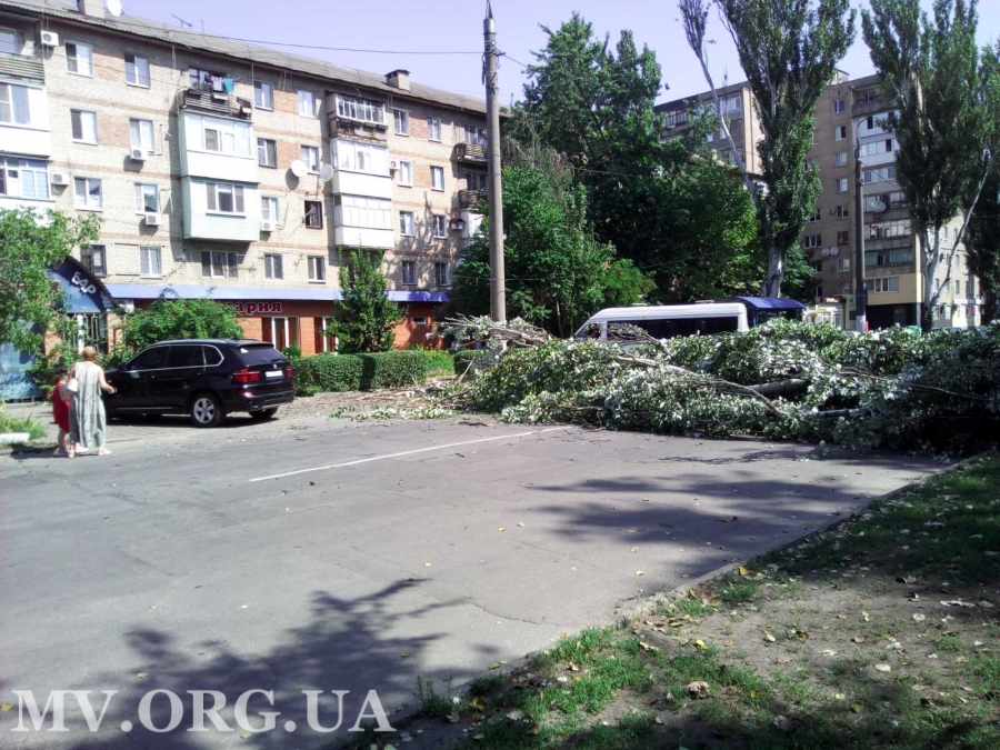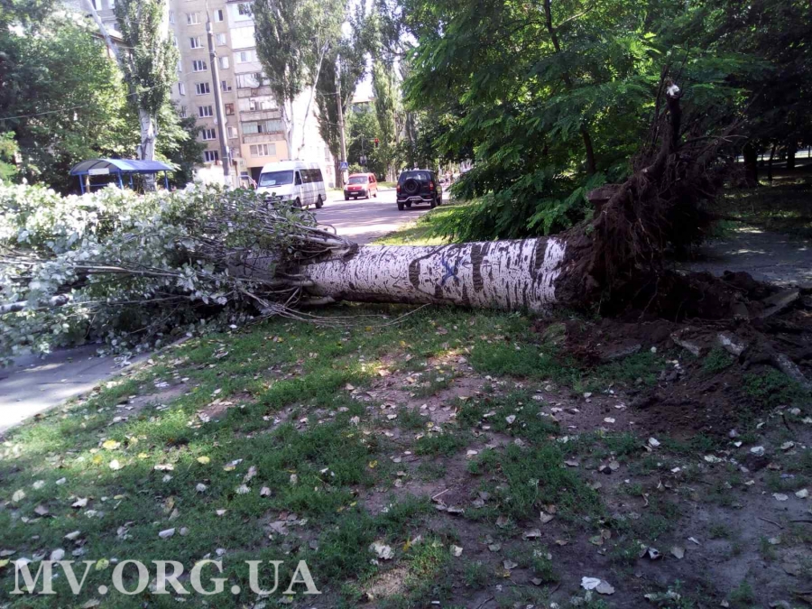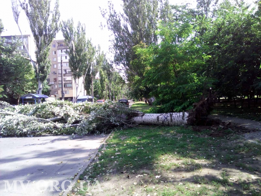 В Мелитополе огромный тополь рухнул на дорогу (ФОТО)