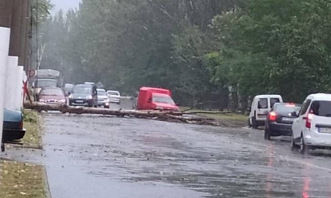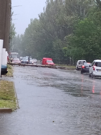 Во время сильного, хоть и непродолжительного, дождя, который сегодня обрушился на Мелитополь, на одной из оживленных улиц случилось ЧП.