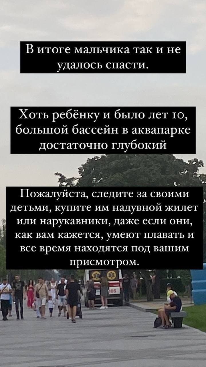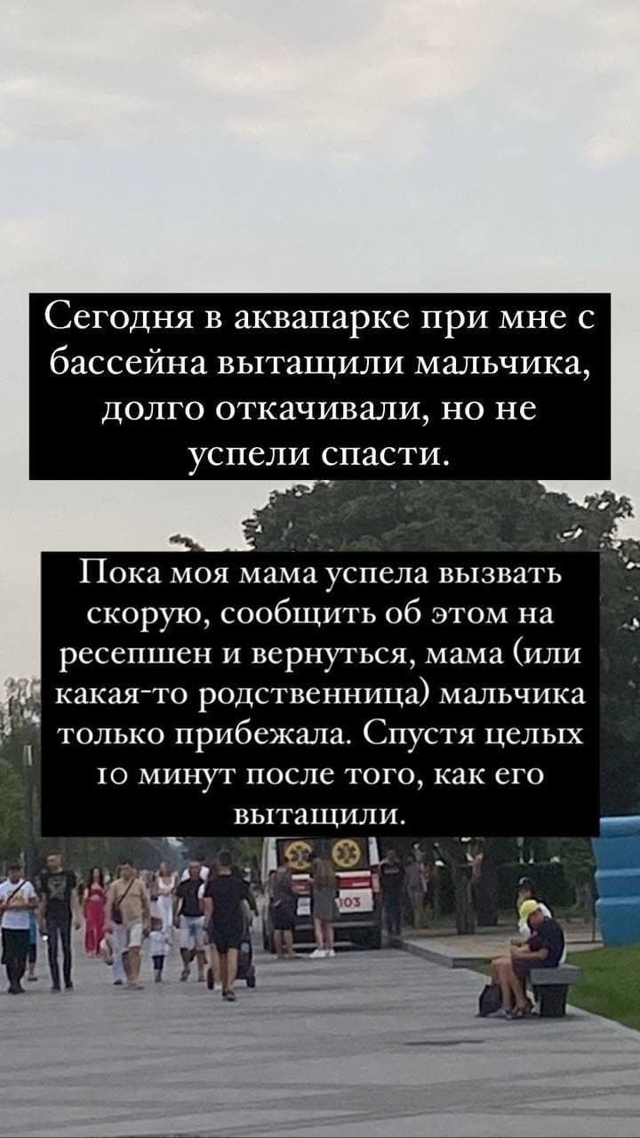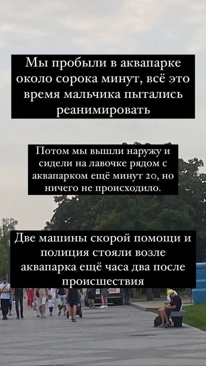 По словам очевидцев, мальчик нырнул в бассейн, после чего ему стало плохо. В это время мама за ребенком не следила. Он была в нетрезвом состоянии и прибежала к бассейну только через 10 минут, когда уже сотрудника аквапарка втянули ребенка из воды.