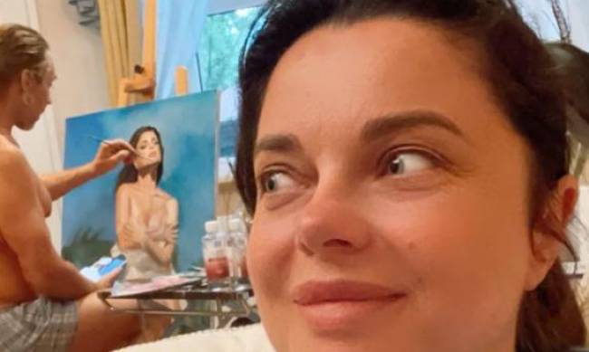 На снимке запечатлен ее муж Тарзан, который с голым торсом рисует портрет Королевой. При этом Тарзан был в одних шортах. А на портрете Королева изображена в очень откровенном платье.