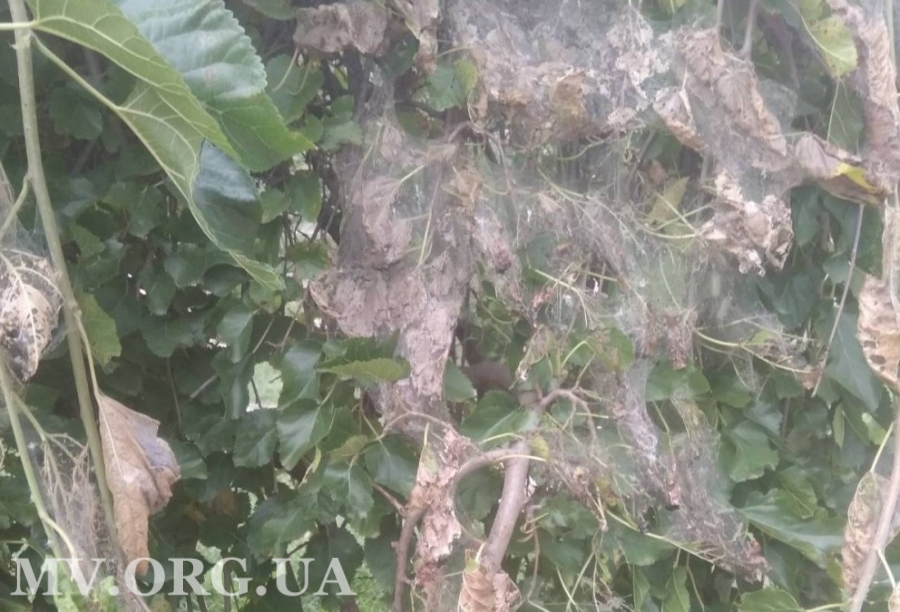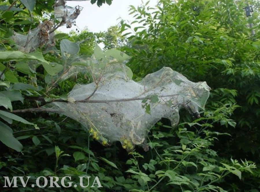 В Запорожской области нашли очаги развития гусениц американской белой бабочки. Личинки этой бабочки массово объедают листья деревьев и окутывают их паутиной. Фитоинспекция объявляет карантин.