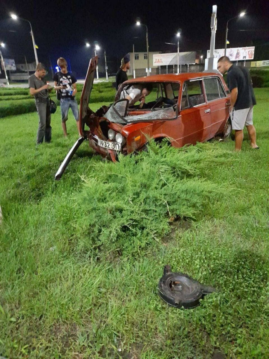 В ночь на 21 августа в Мелитополе "доездились" дрифтеры. На южном выезде из города, на круге, ВАЗ слетел на клумбу и врезался в столб.