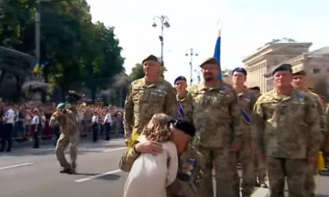 Вчера в Киеве прошел парад в честь Дня независимости. Звездой парада стала маленькая девочка, которая бежала с цветами к военному.