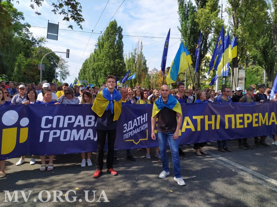 В колоні ми йшли з великим прапором України і банером «Мелітополь». Кияни та гості столиці зустрічали всю колону оплесками. А прочитавши на банері, звідки ми ще й вигукували: «Дякуємо мелітопольським волонтерам!», «Дякуємо за позицію!», «Спасибі, що приїхали», «Мелітополь – черешнева столиця!», «Ваші черешні найсмачніші! Слава Україні» і так далі. І чесно, сльози радості наверталися на очі від того. І згадувалася Революція Гідності, початок війни і те, як наполегливо ми всі тоді у 2013-2014 роках намагалися переконати Україну і самих себе в тому, що «Мелітополь - це Україна!». Боролися, переконували і вистояли тоді, не дозволивши покликати сюди агресора. Впевнені, що наша участь у Марші Захисників тільки закріпила цю тезу.