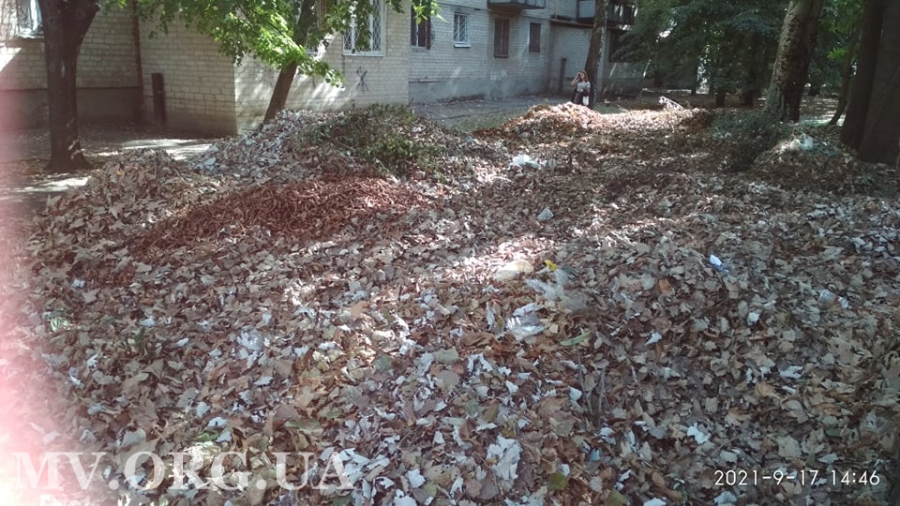 Вторую осень жители дома №233 по улице Февральской, что на Новом Мелитополе, наблюдают у себя под окнами неприглядную картину - гору опавшей листвы вперемешку с бытовым мусором.