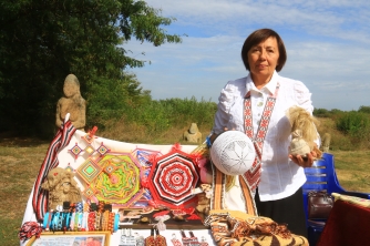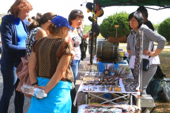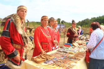 Большие очереди и у столиков с изделиями участников Театра скифской доблести "Скифский стан".