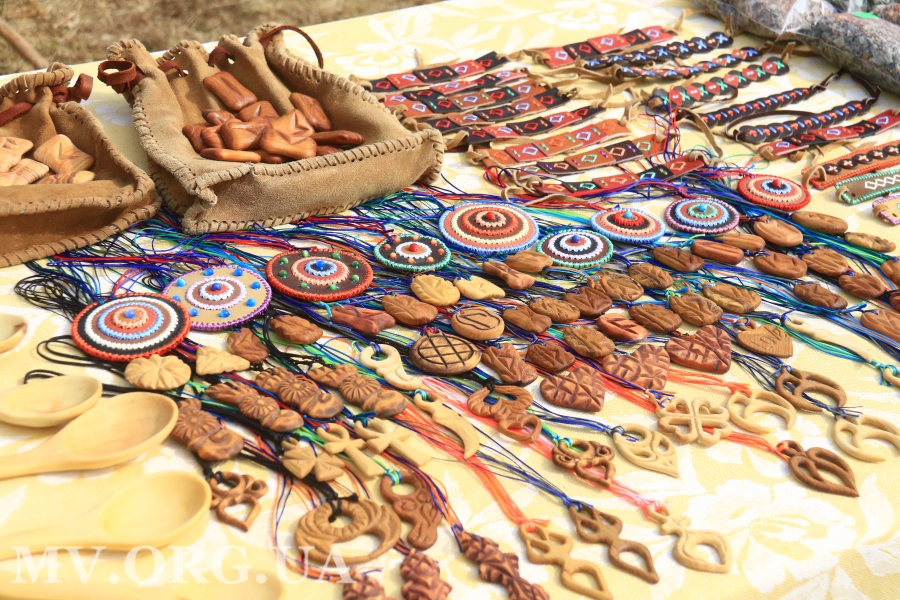 Также на память о фестивале можно приобрести игрушечные копии настоящего скифского оружия - именно такими мечами,секирами и ножами, только острыми и большими, пользовались племена. И конечно, стоит купить украшения - деревянные подвески с рунами, кожаные браслеты, подвески из камня.