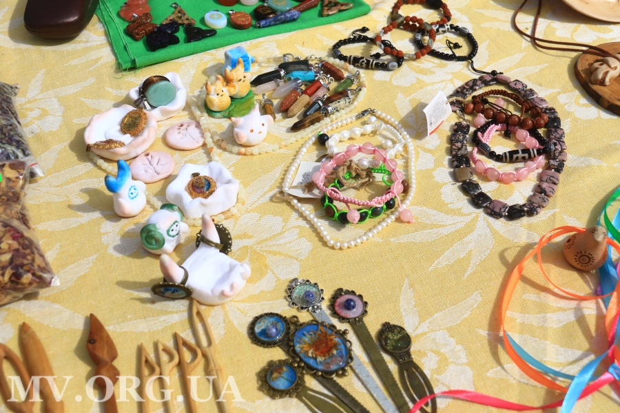 Особое место занимают изделия из молоченой (вымоченной в молоке) глины, авторства Татьяны Дядьковой. Татьяна уже несколько лет проводит мастер-классы по гончарному мастерству в Мелитополе. Ее свистульки обязательно поднимают настроение, а подсвечники, тарелки из глины отлично вписываются в интерьер. Но главное энергетика всех вещей - светлая и позитивная.