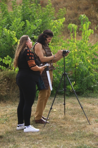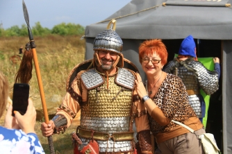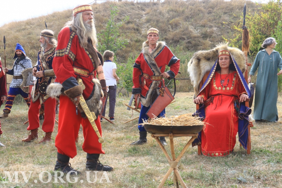 Общение прерывает суровый скифский царь (председатель общества Сергей Мелешко), говорит, пора готовится к открытию праздника и зажжению живого огня.