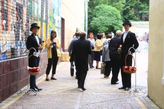 У здания на М. Грушевского гостей встречала карета и ожившие скульптуры, а на входе непосредственно в музейный дворик каждой даме галантные кавалеры дарили розу.