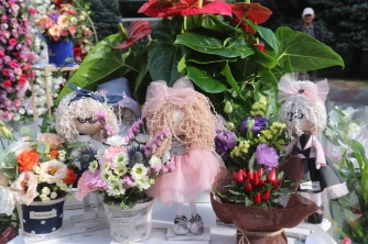 Пожалуй, самой популярной фотозоной на ярмарке была арка из живых цветов от магазина «Amsterdam». Девочки-флористы, которые полночи создавали эту красоту, признались, что изначально хотели подсчитать, сколько роз уйдет на создание трехъярусной арки. Но потом сбились со счета.