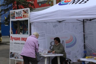 А попасть на первую полосу газеты «Мелитопольские ведомости» можно было у палатки МВ-холдинга. Креативная фотозона была к услугам всех желающих оказаться на передовице с заголовком «Лучшие люди собрались именно тут». Кроме того, сотрудники холдинга предлагали подписку на свои издания - «МВ», «Программка», «Надежда» - по льготной цене. А каждый подписавшийся автоматически становился участником моментальной беспроигрышной лотереи. Счастливчики могли выиграть электрочайник, термос, сковороду с тефлоновым покрытием, миксер для взбивания кофейной пенки, полотенца и многое другое.