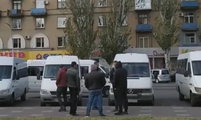 Как видно на видео, возле парковки собрались водители маршруток. Они стоят небольшими группами, что-то обсуждают. При этом нет никаких плакатов и прочих лозунгов.