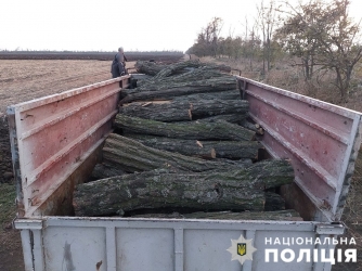В лесополосе в двух километрах от села полицейские обнаружили автомобиль «ВАЗ-2103» с прицепом, который уже был загружен частично древесиной, а также трех "добытчиков", которые с помощью бензопилы пилили деревья акации.